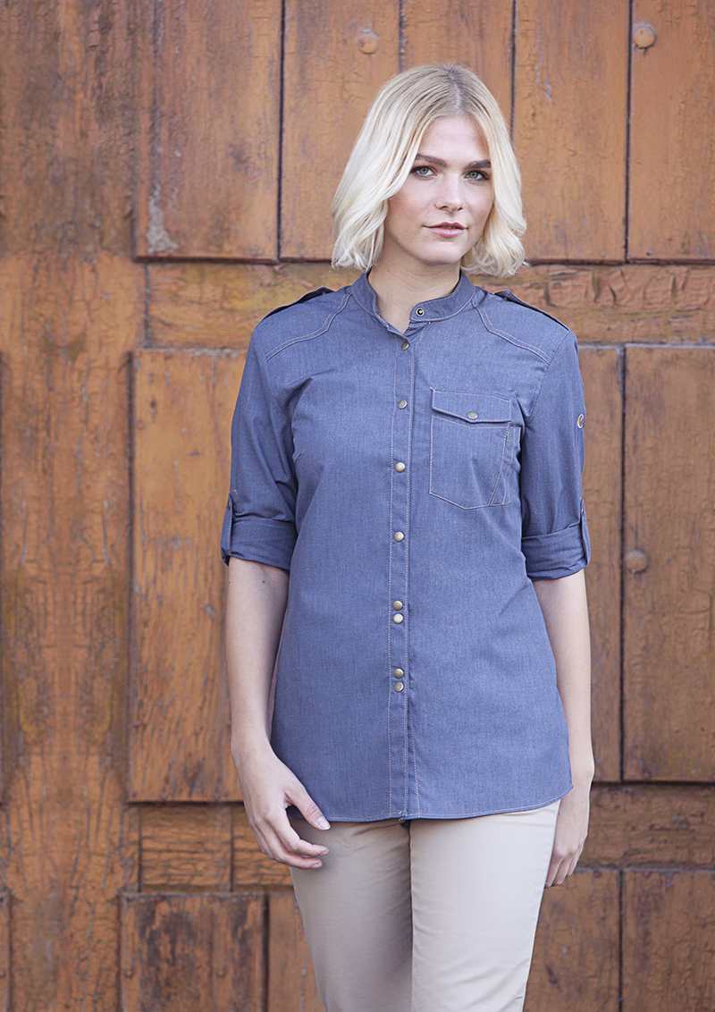 Lässiges Damenkochhemd im Denim-Look für höchste Ansprüche