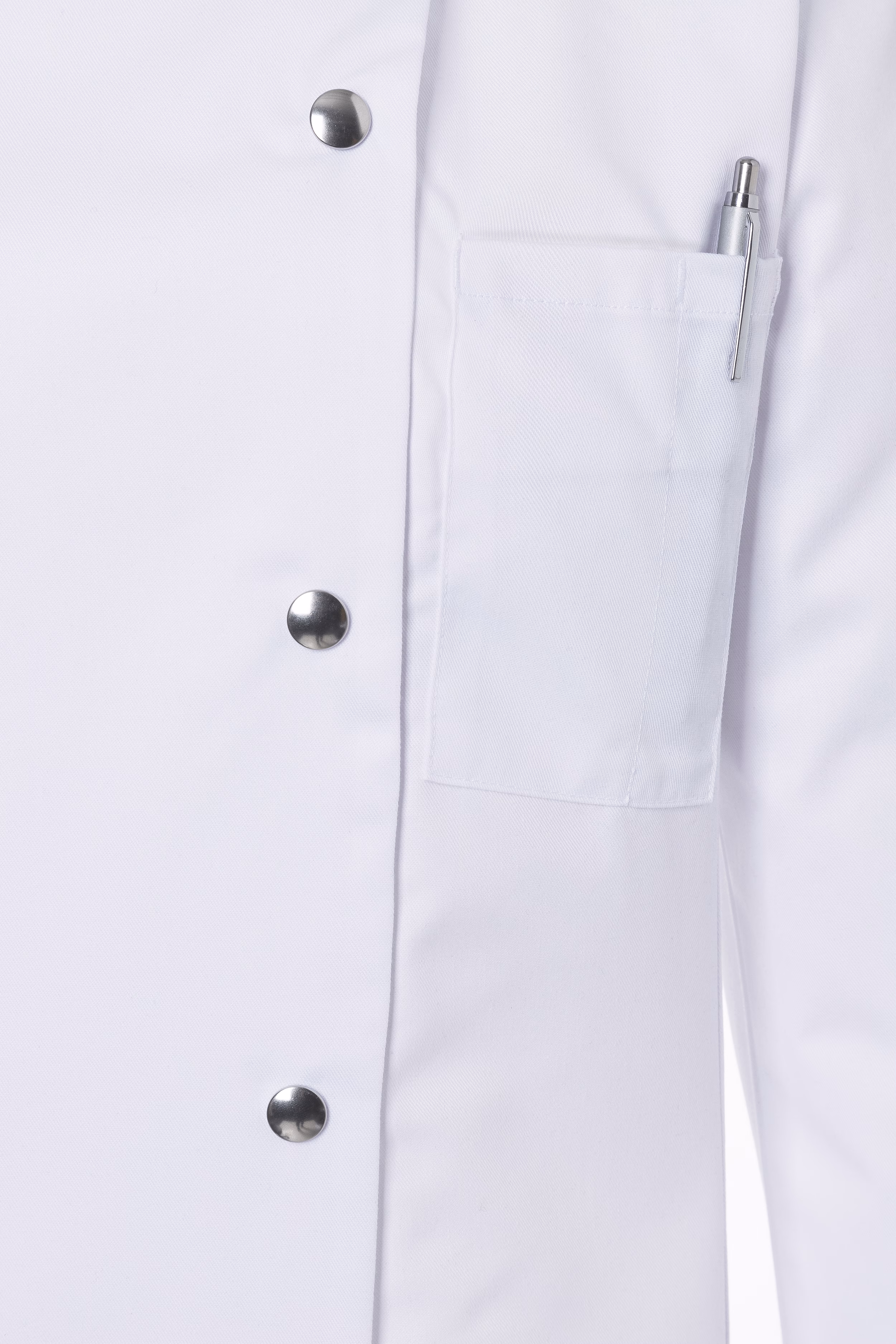 Das Köpergewebe aus 65 % Polyester und 35 % Baumwolle mit einem Flächengewicht von 215 g/m² gewährleistet Strapazierfähigkeit und Langlebigkeit. Die Kochjacke ist hochveredelt, einlaufvorbehandelt sowie waschecht bis 95 °C – ideal für den täglichen Einsatz in der Industrie- oder Gastronomiewäsche. Die OEKO-TEX Standard100-Zertifizierung garantiert Ihnen zudem ein schadstoffgeprüftes Produkt, das höchsten Qualitäts- und Umweltstandards entspricht.