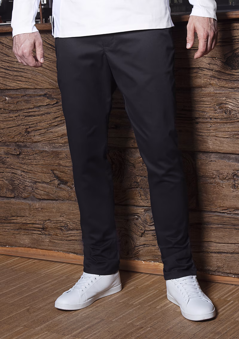 Diese Chinohose vereint das moderne Design einer klassischen Chino mit dem Komfort einer Joggpants und eignet sich dadurch hervorragend für vielfältige Einsatzbereiche wie Küche, Reinigung, Pflege oder Wellness. Auch außerhalb des Berufs überzeugt sie als bequemer und zugleich eleganter Begleiter.