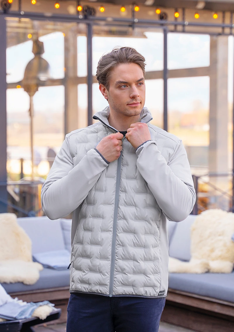 | leichte und funktionelle Hybrid-Jacke für Herren im sportlichen Stepp-/Webfleece-Design