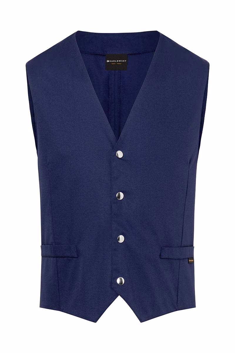 Die Herrenweste Kai überzeugt durch ihre zeitlose Eleganz und hochwertige Verarbeitung – ideal für den anspruchsvollen Einsatz in Gastronomie, Hotellerie sowie im Service- und Wellnessbereich. Mit ihrem modernen, leicht taillierten Schnitt unterstreicht sie Ihre professionelle Erscheinung und sorgt zugleich für eine optimale Bewegungsfreiheit während des Arbeitstages.