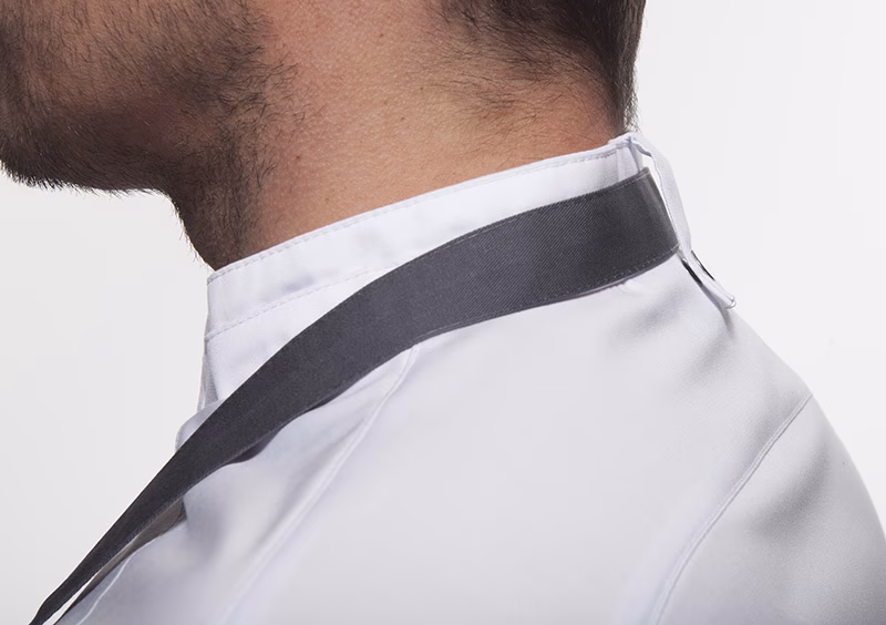 | funktionelle Schlaufe am hinteren Kragen zum Halten einer Latzschürze (verhindert das Verrutschen)