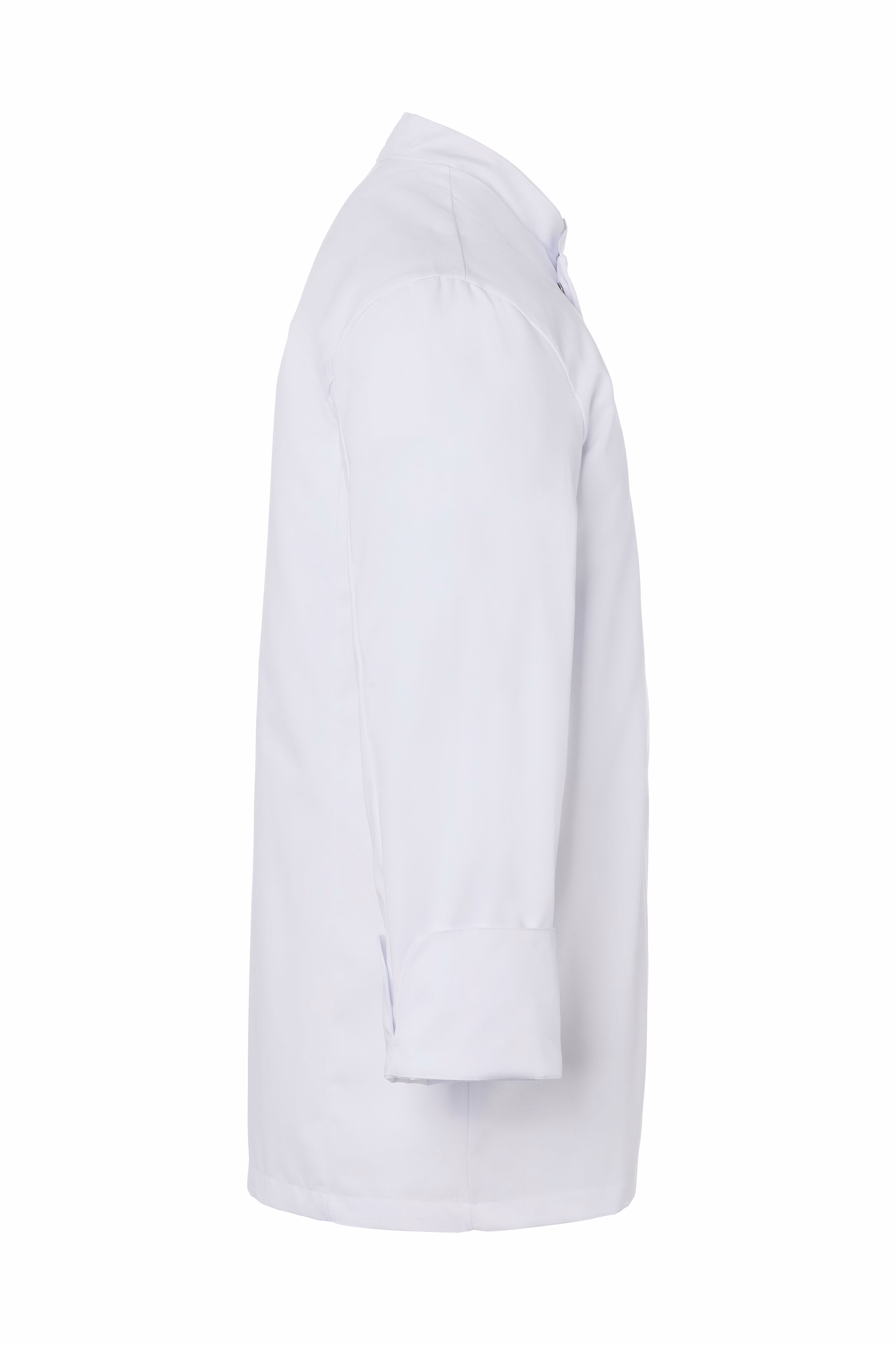 Die reguläre Passform sorgt für einen geraden Schnitt, der weder einengt noch übermäßig weit sitzt. Wiener Nähte am Rückenteil verleihen der Jacke nicht nur eine elegante Linienführung, sondern erhöhen auch die Stabilität bei intensiver Nutzung. Der Stehkragen schützt den Halsbereich wirkungsvoll vor Hitzeeinwirkung in der Küche, während die Ärmelmanschetten mit praktischem Schlitz für zusätzlichen Komfort sorgen.
