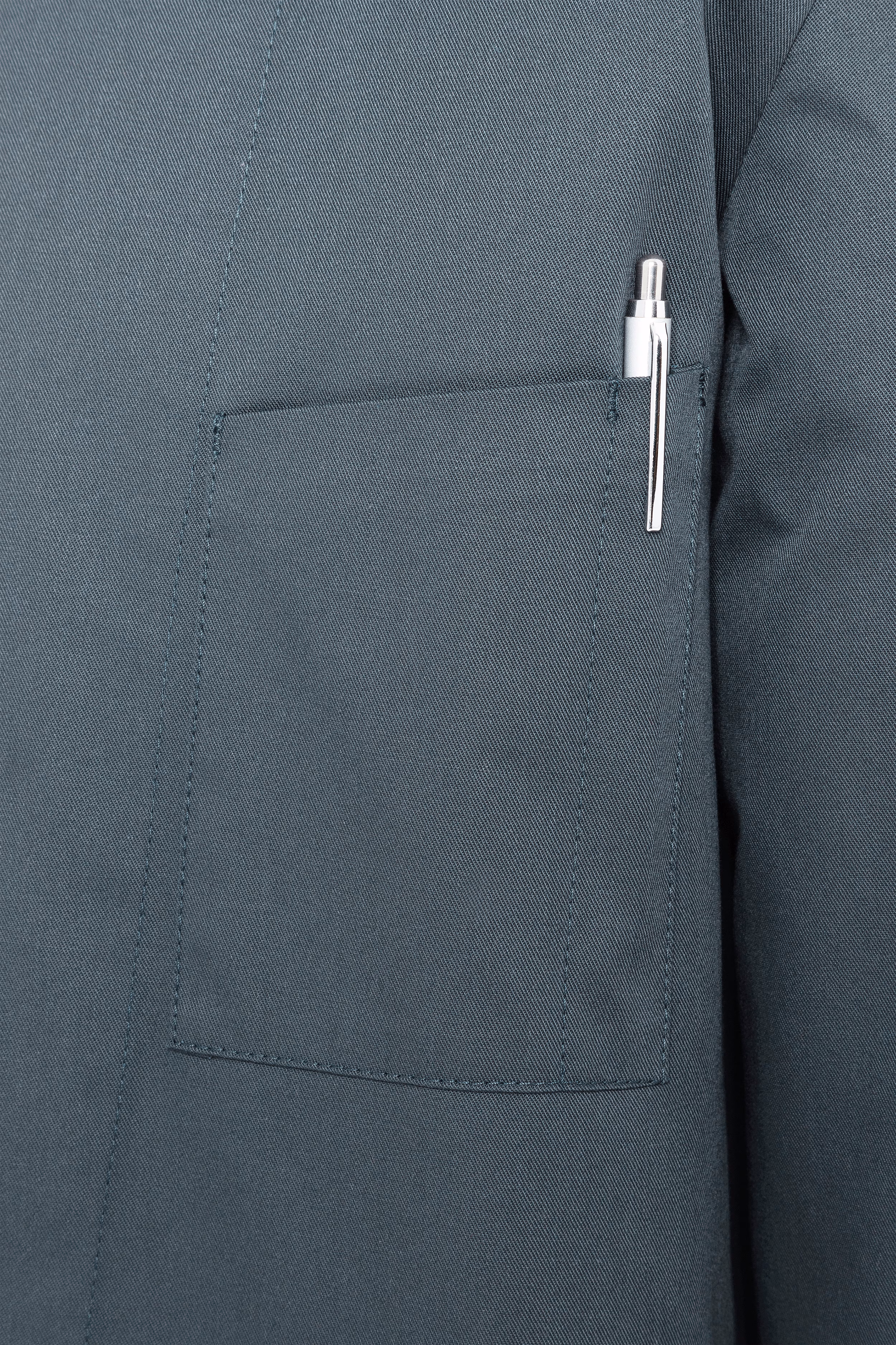Ihre Utensilien haben Sie dank der aufgesetzten, angeschrägten Brusttasche stets griffbereit. Das integrierte Stiftfach ermöglicht es Ihnen, Schreibgeräte sicher zu verstauen – so behalten Sie jederzeit den Überblick über Notizen oder Bestellungen. Der einreihige Verschluss mit fünf Druckknöpfen erleichtert das schnelle An- und Ausziehen der Jacke und gewährleistet gleichzeitig einen sicheren Sitz während des Arbeitens.