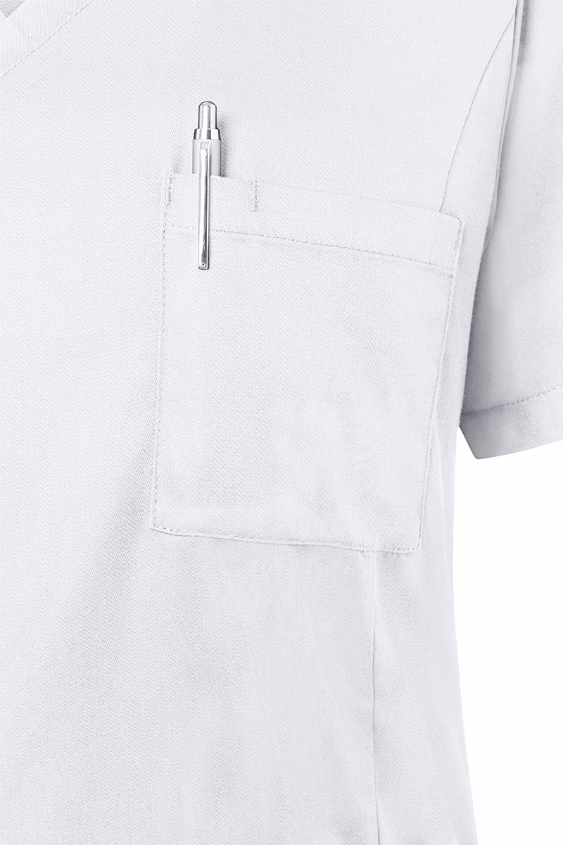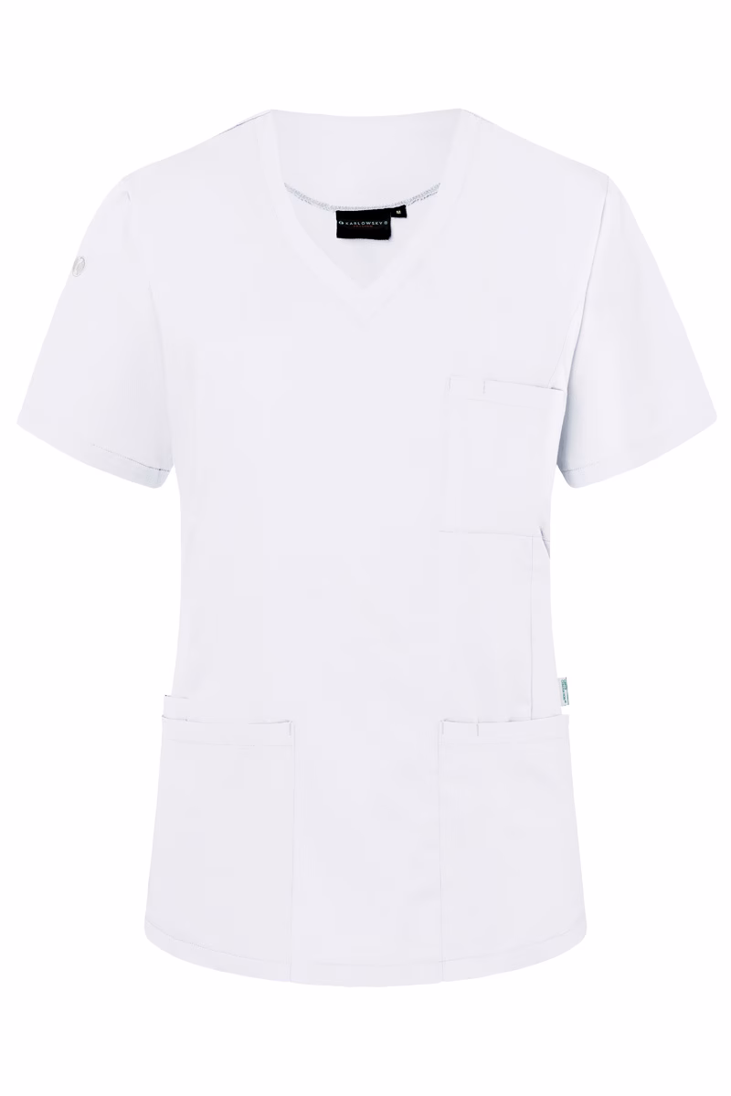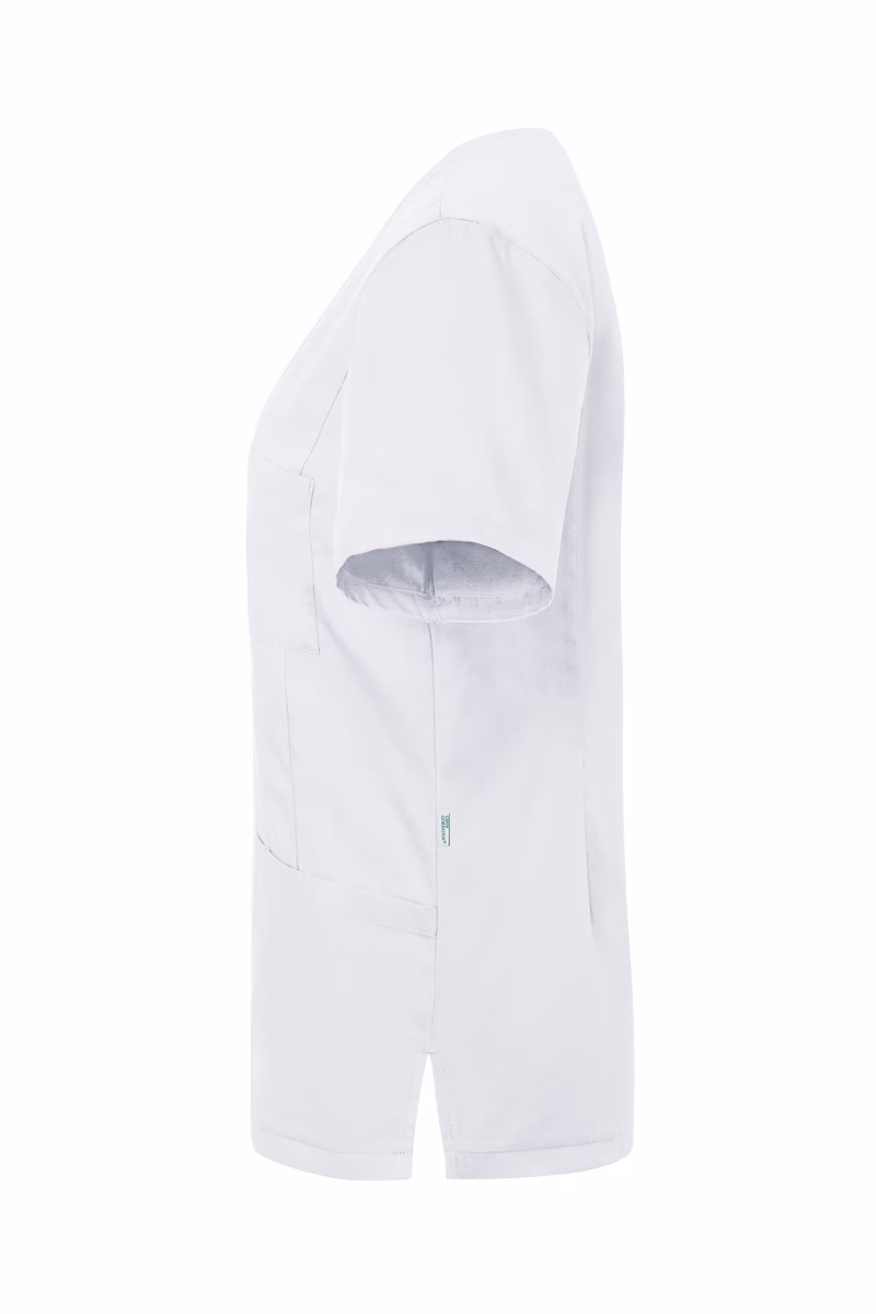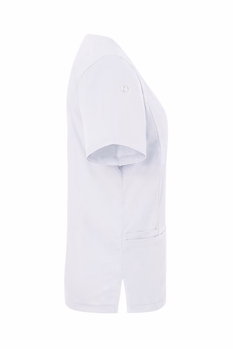 Der Kasack verfügt über einen klassischen V-Ausschnitt sowie kurze Ärmel, die für eine luftige Passform sorgen. Die leicht taillierte Regular-Passform unterstreicht Ihre professionelle Silhouette ohne dabei einzuengen.