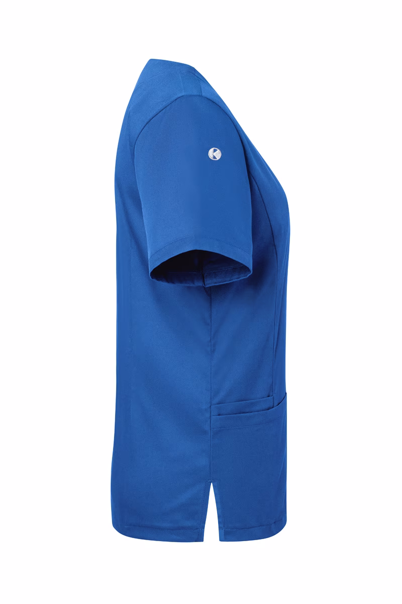 Der Kasack verfügt über einen klassischen V-Ausschnitt sowie kurze Ärmel, die für eine luftige Passform sorgen. Die leicht taillierte Regular-Passform unterstreicht Ihre professionelle Silhouette ohne dabei einzuengen.
