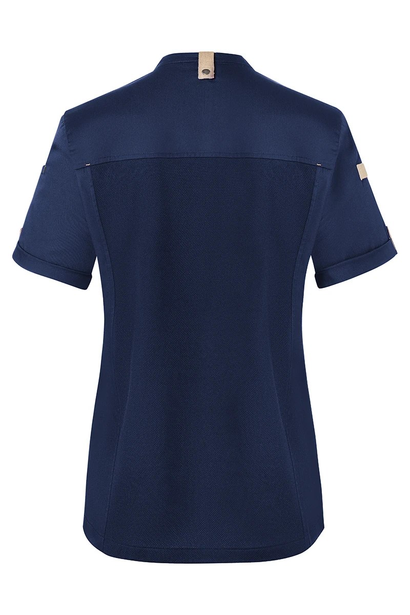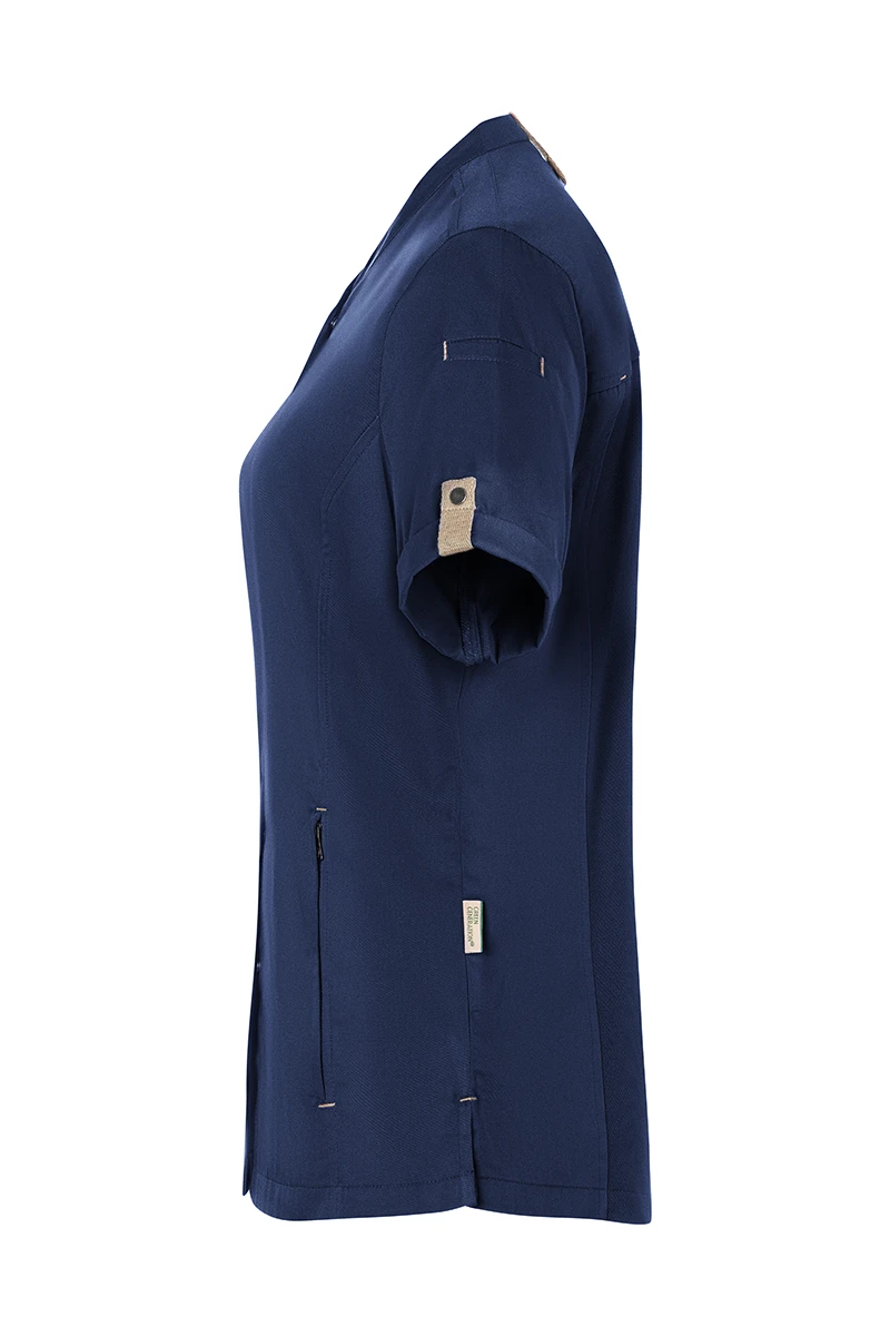 | innovative nachhaltige Kochjacke für Damen mit kurzen Ärmeln, die urbanen Style mit natürlichem Flair verbindet