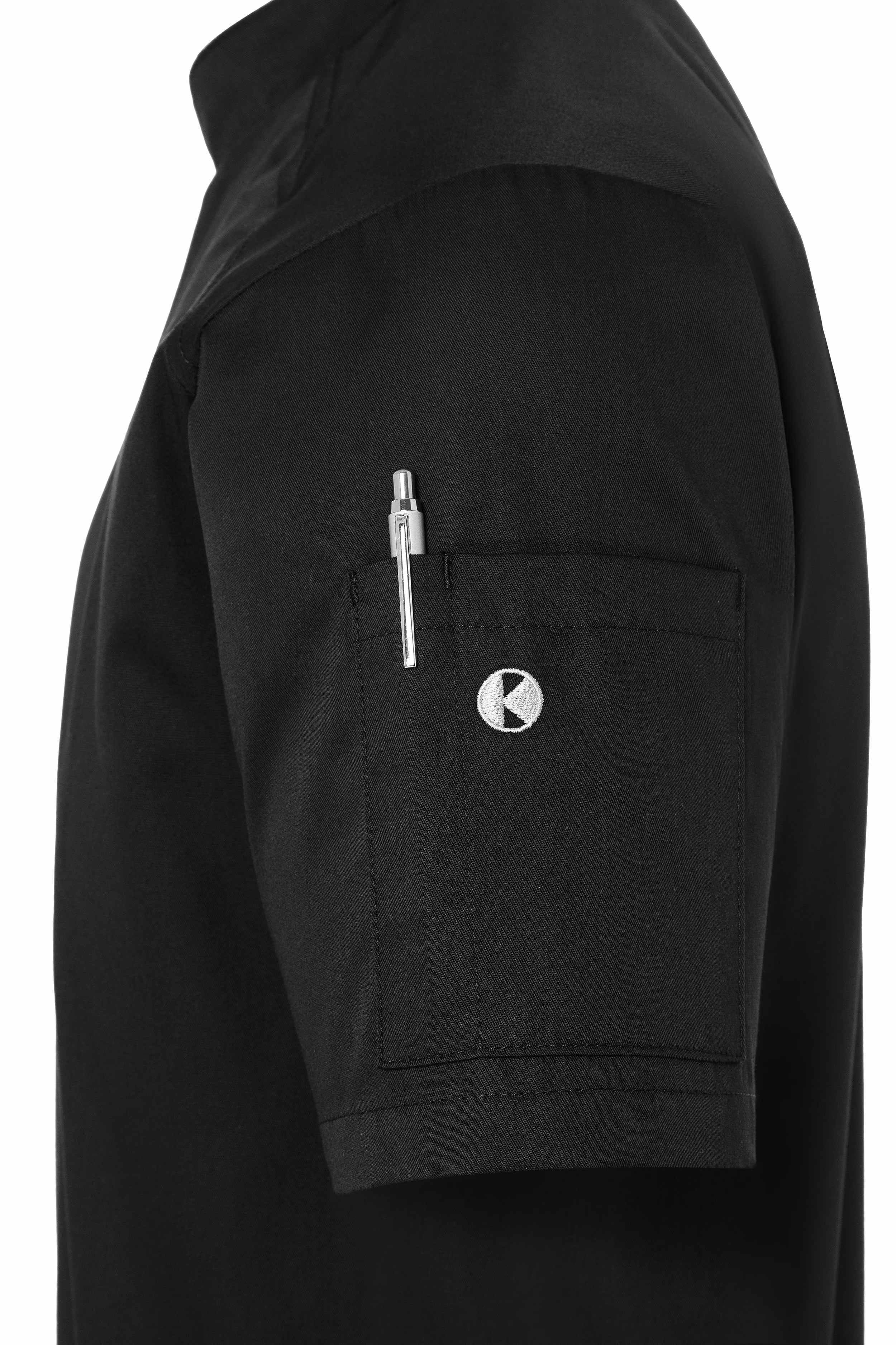 - Auf der linken Ärmelseite befindet sich eine aufgesetzte Tasche (9,5 x 13 cm) inklusive eines integrierten Stiftfachs (2 x 13 cm), sodass wichtige Utensilien stets griffbereit sind.