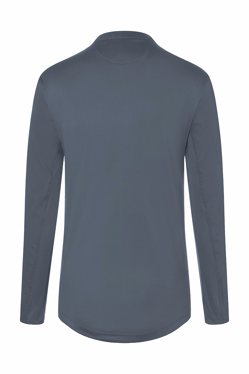Das taillierte Slim-Fit-Schnittbild unterstreicht Ihre feminine Silhouette und sorgt für einen modernen Auftritt. Ein schmaler Stehkragen mit kleiner Knopfleiste verleiht dem Shirt eine stilvolle Note und ermöglicht zugleich eine individuelle Anpassung des Halsausschnitts. Besonders praktisch ist die Leistentasche am linken Ärmel, die kleine Utensilien sicher verstaut und stets griffbereit hält. Die sorgfältig verarbeiteten Nähte gewährleisten Langlebigkeit auch bei häufigem Waschen.