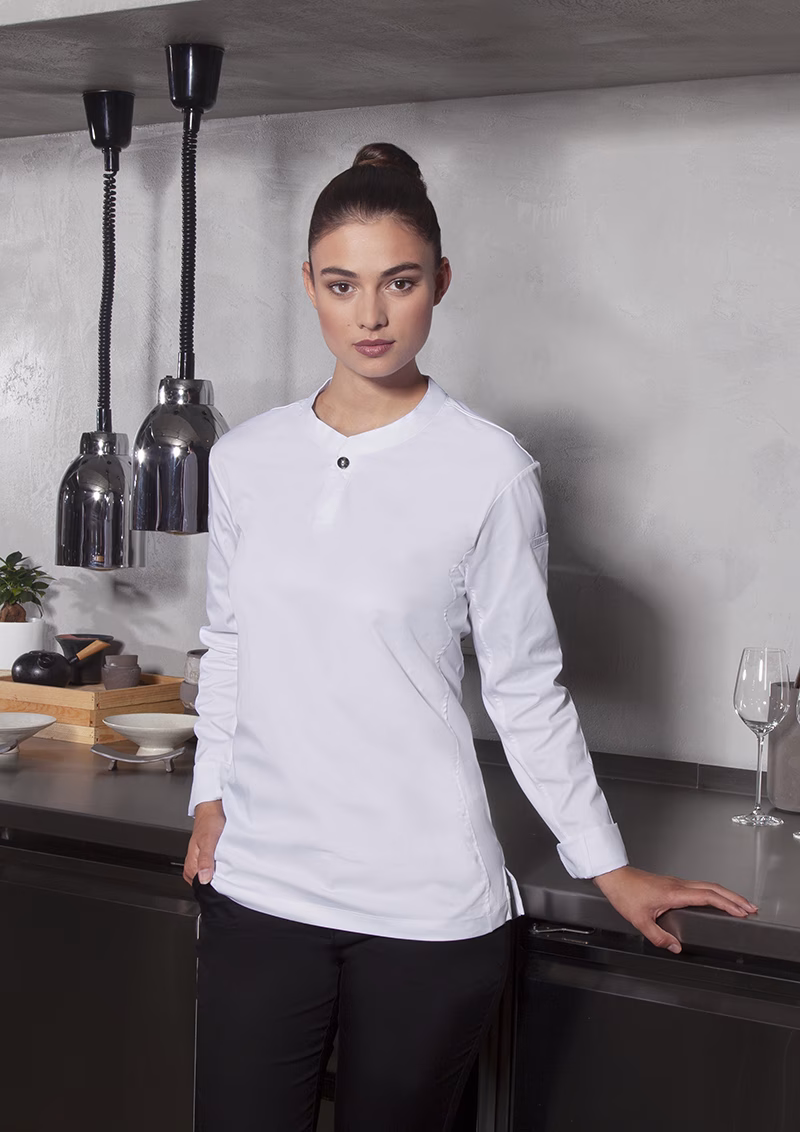 Mit dem Langarm-Damen-Arbeitsshirt Performance präsentieren wir Ihnen ein hochwertiges Kleidungsstück, das speziell auf die Bedürfnisse von Frauen in der Gastronomie, Hotellerie sowie im Service- und Wellnessbereich zugeschnitten ist. Das moderne Design vereint sportliche Eleganz mit funktionaler Vielseitigkeit – ideal für den professionellen Alltag und darüber hinaus.