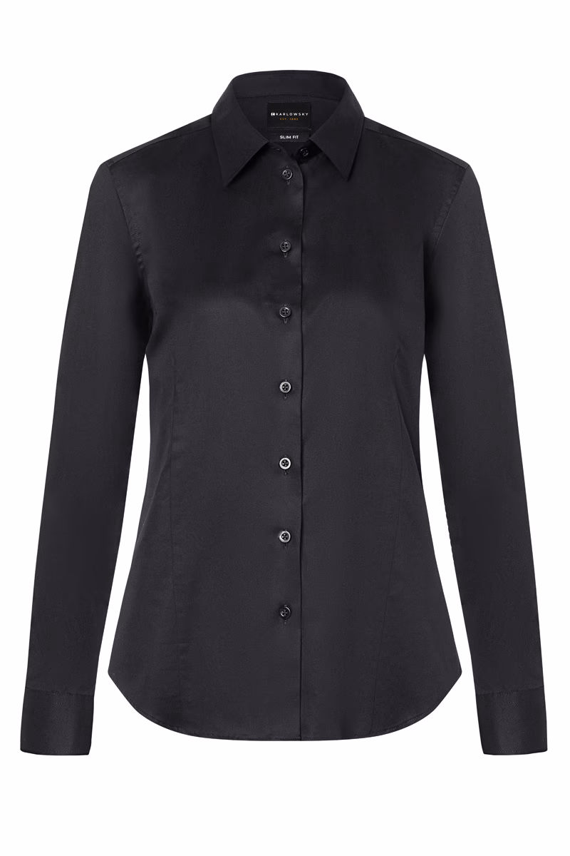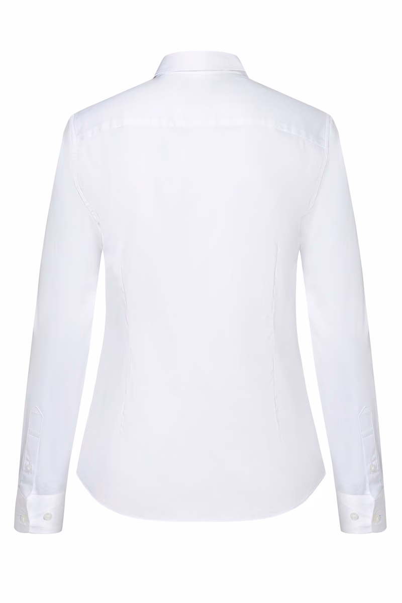 Die leicht taillierte Passform unterstreicht Ihre feminine Linie, ohne dabei einzuengen. Brust- und Taillenabnäher sowie eine Rückenpasse sorgen für einen optimalen Sitz und eine professionelle Optik. Der klassische Kentkragen sowie die glatte Knopfleiste fügen sich harmonisch in das schlichte Design ein. Lange Ärmel mit größenverstellbarer Einknopfmanschette bieten Ihnen zusätzlichen Komfort und Flexibilität.