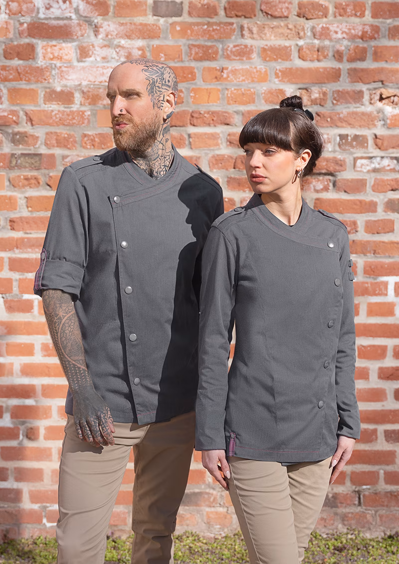 | stylisch, rockige Langarm-Kochjacke für Herren in Jeans-Optik