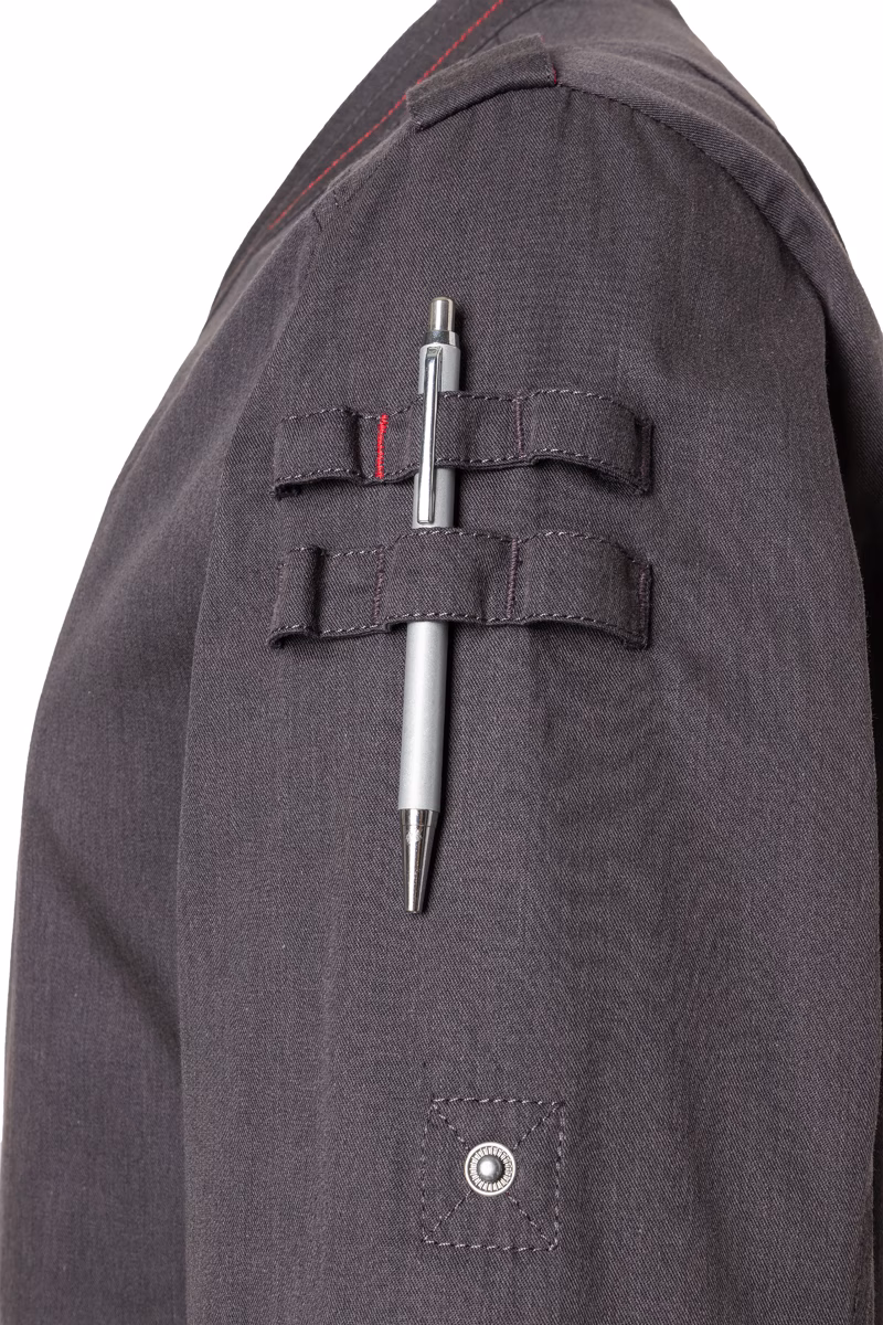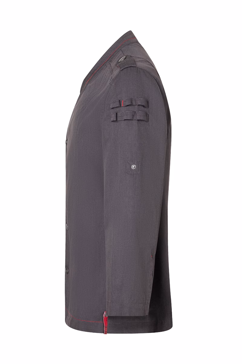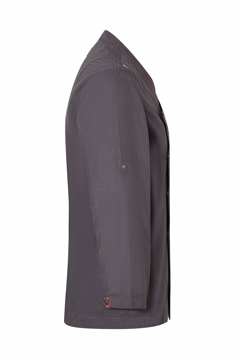 | asymmetrisch geschlossene, einreihige 5-Knopf-Jacke mit Druckknöpfen mit ROCK CHEF®-Prägung zum schnellen Öffnen und Schließen