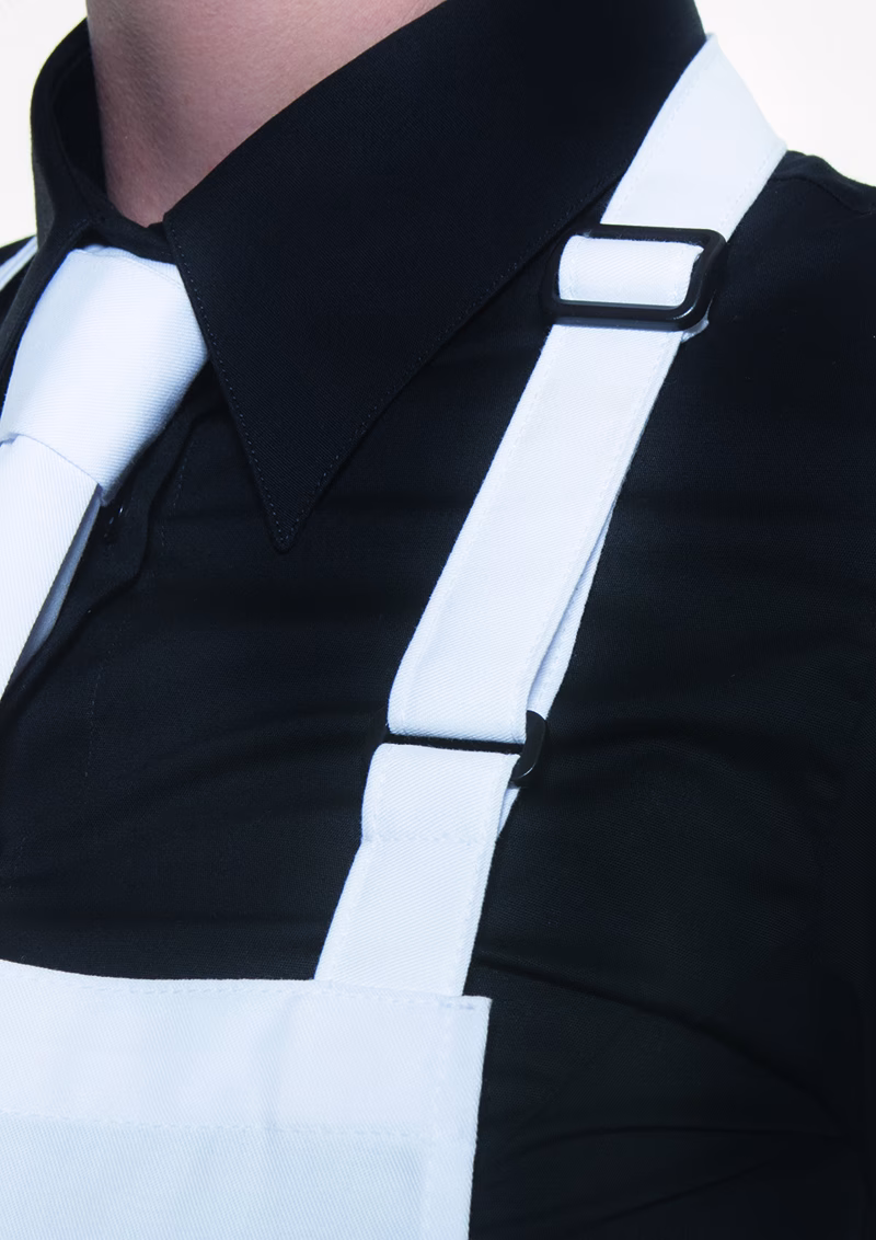 Mit den Maßen 75 x 90 cm bietet die Latzschürze einen großzügigen Schutzbereich vor Verschmutzungen. Die Bänder aus dem gleichen Schürzenstoff sind mit einer stabilen Naht gesichert und ermöglichen dank der stufenlos verstellbaren Schnalle eine individuelle Anpassung der Länge bis zu 70 cm. So passt sich die Schürze flexibel Ihrer Körpergröße und Arbeitsposition an – für uneingeschränkte Bewegungsfreiheit während des Servierens oder Stylings.