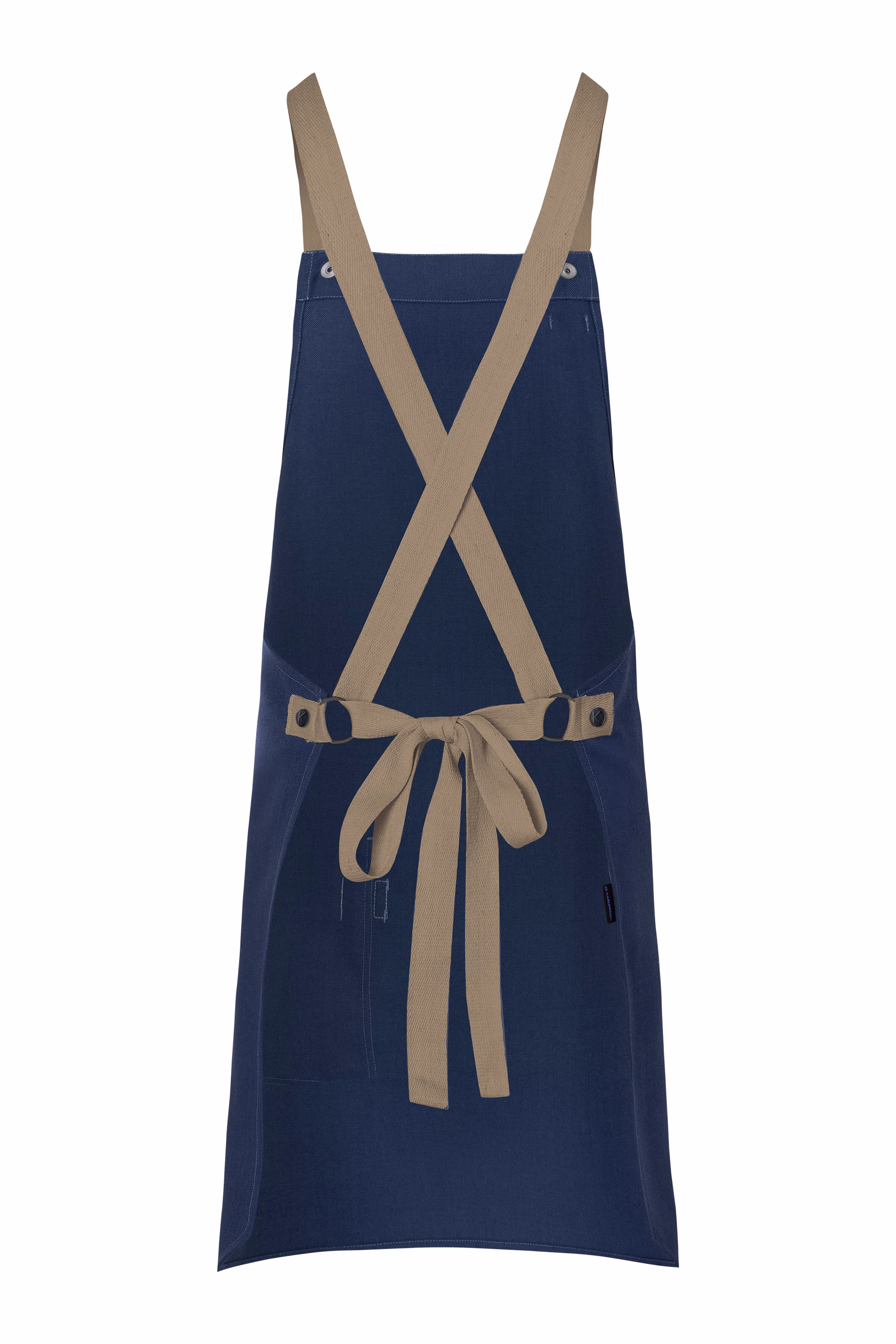 Die kontrastfarbenen Bänder in natürlicher Optik sind abnehmbar und werden über Druckknöpfe befestigt. Sie verlaufen über die Schultern, wodurch der Nackenbereich spürbar entlastet wird. Der flexible Verschluss auf der Rückseite erlaubt es Ihnen, die Länge und Höhe individuell anzupassen: Die Träger werden gekreuzt, durch Schnallen gezogen und anschließend verknotet – so sitzt die Schürze stets perfekt und schränkt Ihre Bewegungen nicht ein.