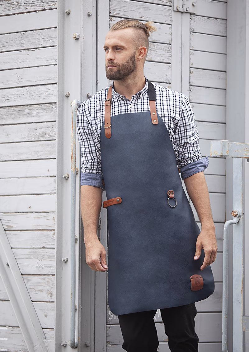 | stylische Latzschürze aus angenehm leichtem und schmiegsamem Rindsleder