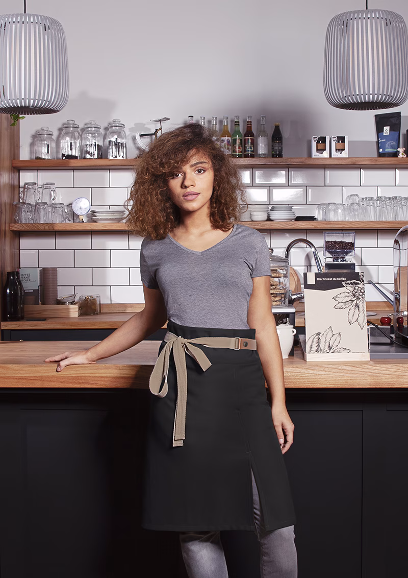 Der Anteil an recyceltem Polyester aus Plastikabfällen macht den Vorbinder „Green Generation“ zu einer bewussten Wahl für umweltorientierte Unternehmen. Gleichzeitig verbindet das Modell modernes Design mit höchstem Tragekomfort und funktionaler Vielseitigkeit – perfekt abgestimmt auf die Ansprüche professioneller Servicekräfte.