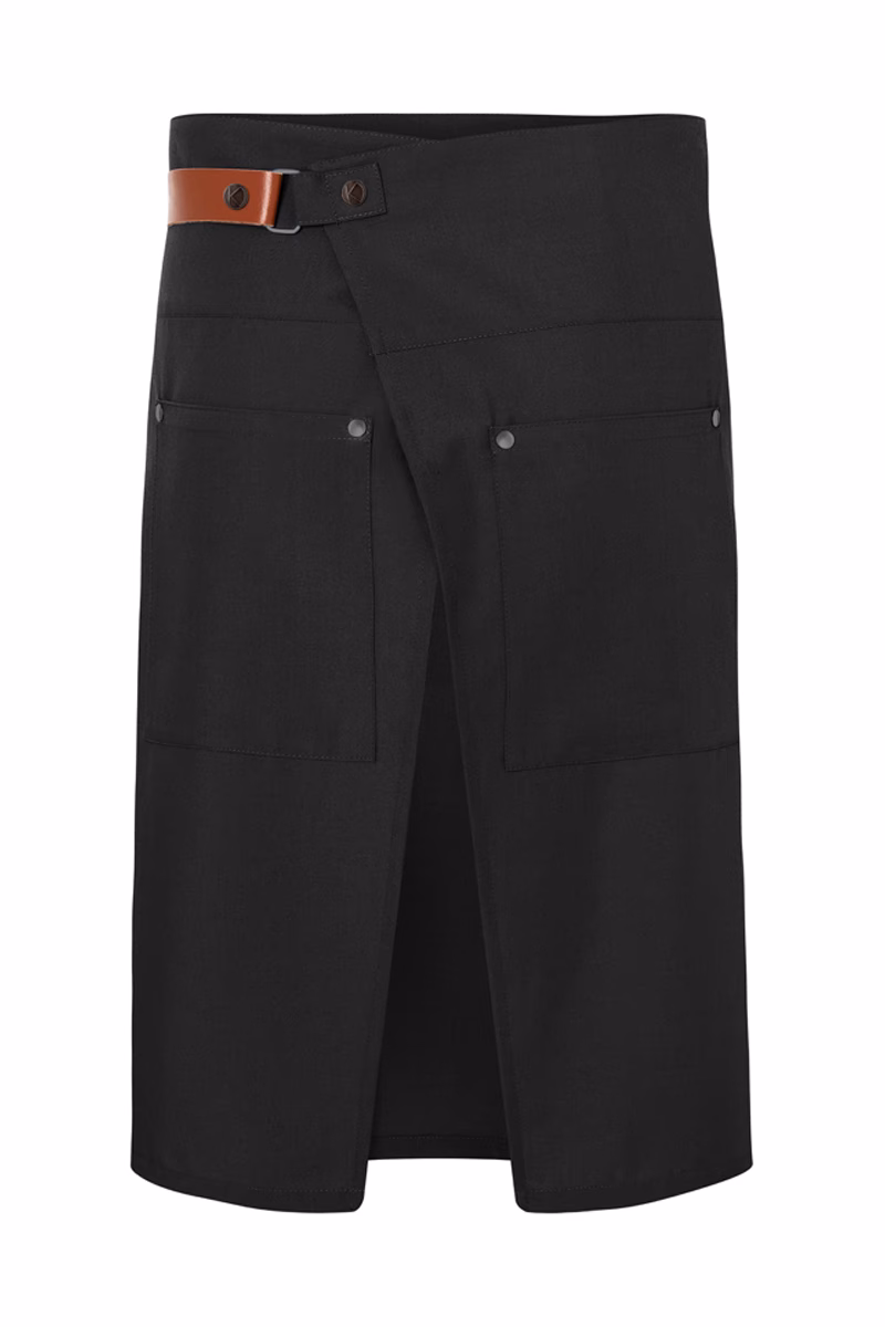 Der großzügige Zuschnitt von 110 x 65 cm bietet optimale Abdeckung bei gleichzeitig hoher Bewegungsfreiheit. Ein praktischer Gehschlitz unterstützt Ihre Mobilität auch in hektischen Situationen. Die urban gestalteten Taillenbänder aus echtem Leder und naturfarbenen Kontrastbändern lassen sich dank innovativer Druckknöpfe flexibel abnehmen oder anbringen – so passen Sie den Vorbinder bequem an Ihre individuellen Bedürfnisse an. Der zum Binden vorgesehene Verschluss garantiert eine sichere Fixierung ohne Einschränkungen.