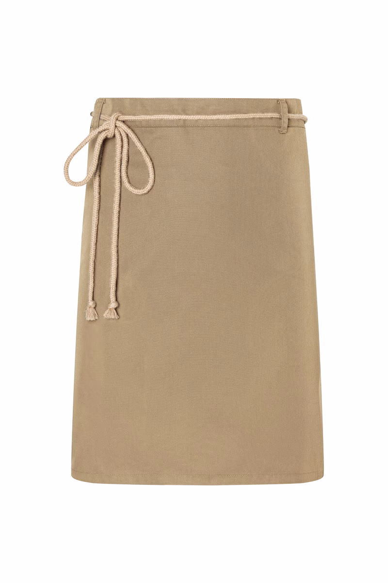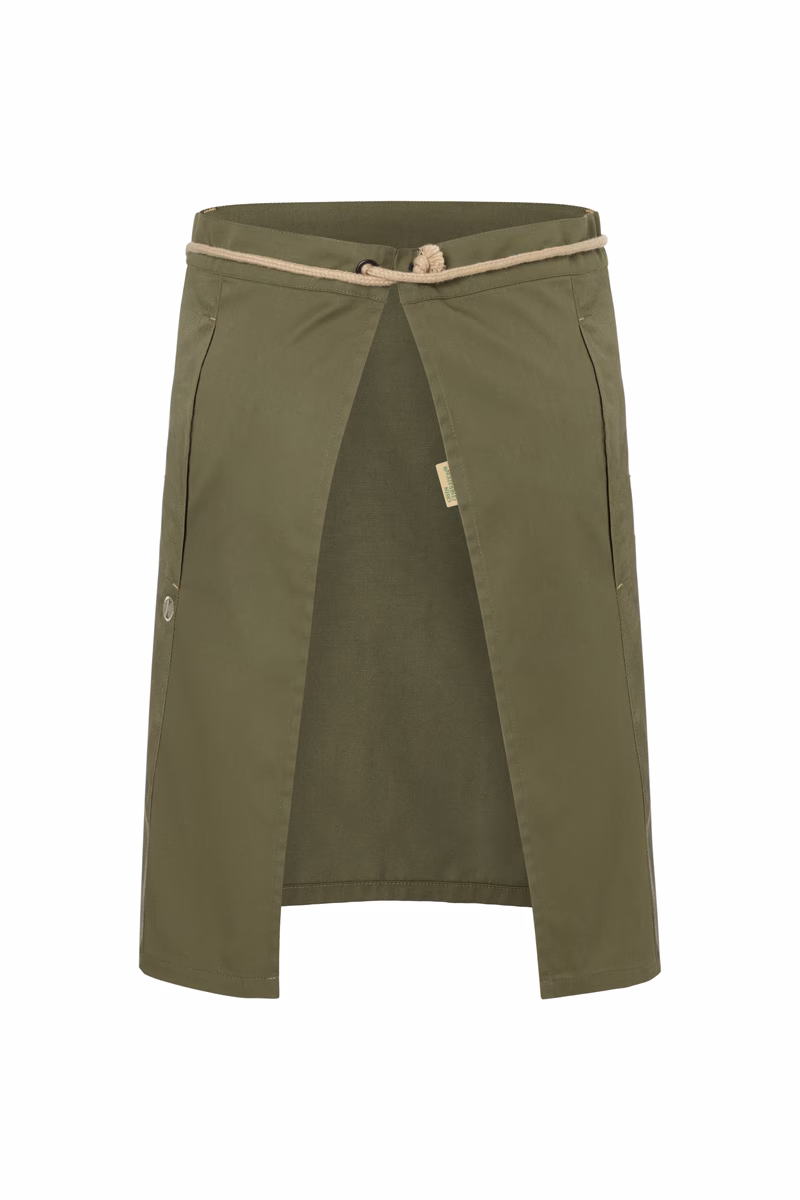 Der Vorbinder verzichtet bewusst auf Taschen zugunsten eines klaren, urbanen Designs. Innovative seitliche Eingriffe ermöglichen Ihnen dennoch leichten Zugriff auf Ihre Hosentaschen – so behalten Sie alle wichtigen Utensilien stets griffbereit. Die Taillenbänder aus kontrastfarbenen Kordeln sorgen nicht nur für einen sicheren Halt, sondern setzen zugleich natürliche Akzente im Design. Zwei zusätzliche Schlaufen am oberen Bund erleichtern das Binden und garantieren eine individuelle Anpassung an Ihre Körperform.