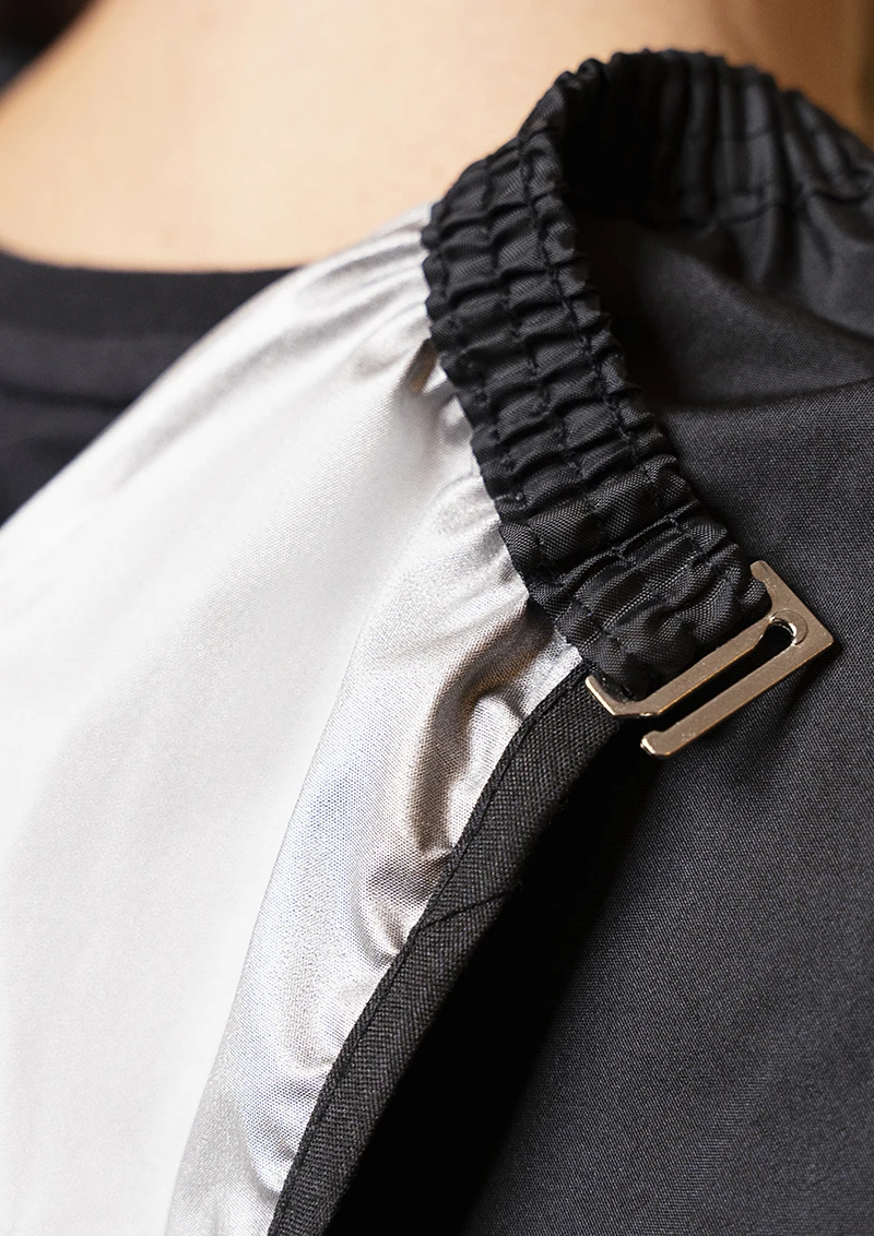 | praktischer verstellbarer und elastischer Verschluss mit Metallclips an der Halsöffnung