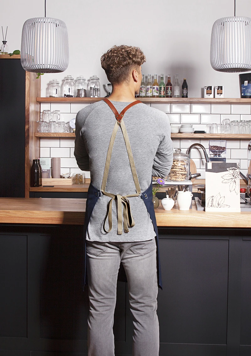 | modern, comfortable bib apron at the cutting edge perfectly combining sustainability and style
