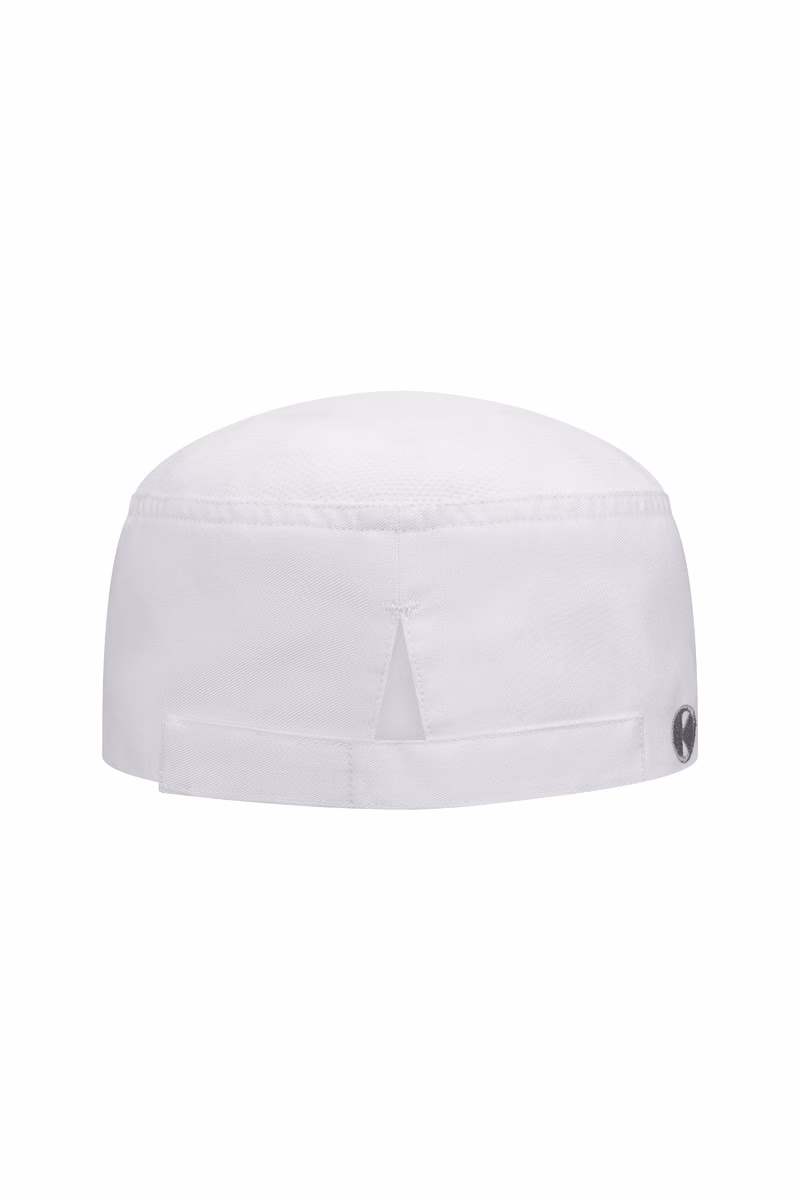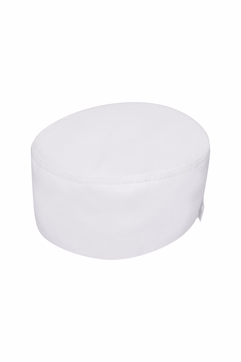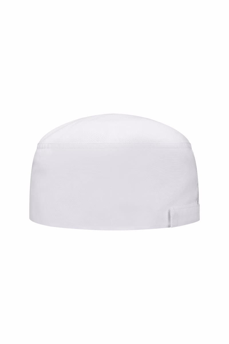 The chef's hat is equipped with a Velcro fastener at the back of the head, which allows for individual size adjustment. This ensures that the hat fits securely and comfortably at all times without slipping. The opening at the back of the head is particularly practical: it allows the wearer to wear their hair in open or closed braids, which is especially convenient in service and wellness establishments. The fit has been designed to ensure plenty of freedom of movement – an indispensable advantage during long shifts.