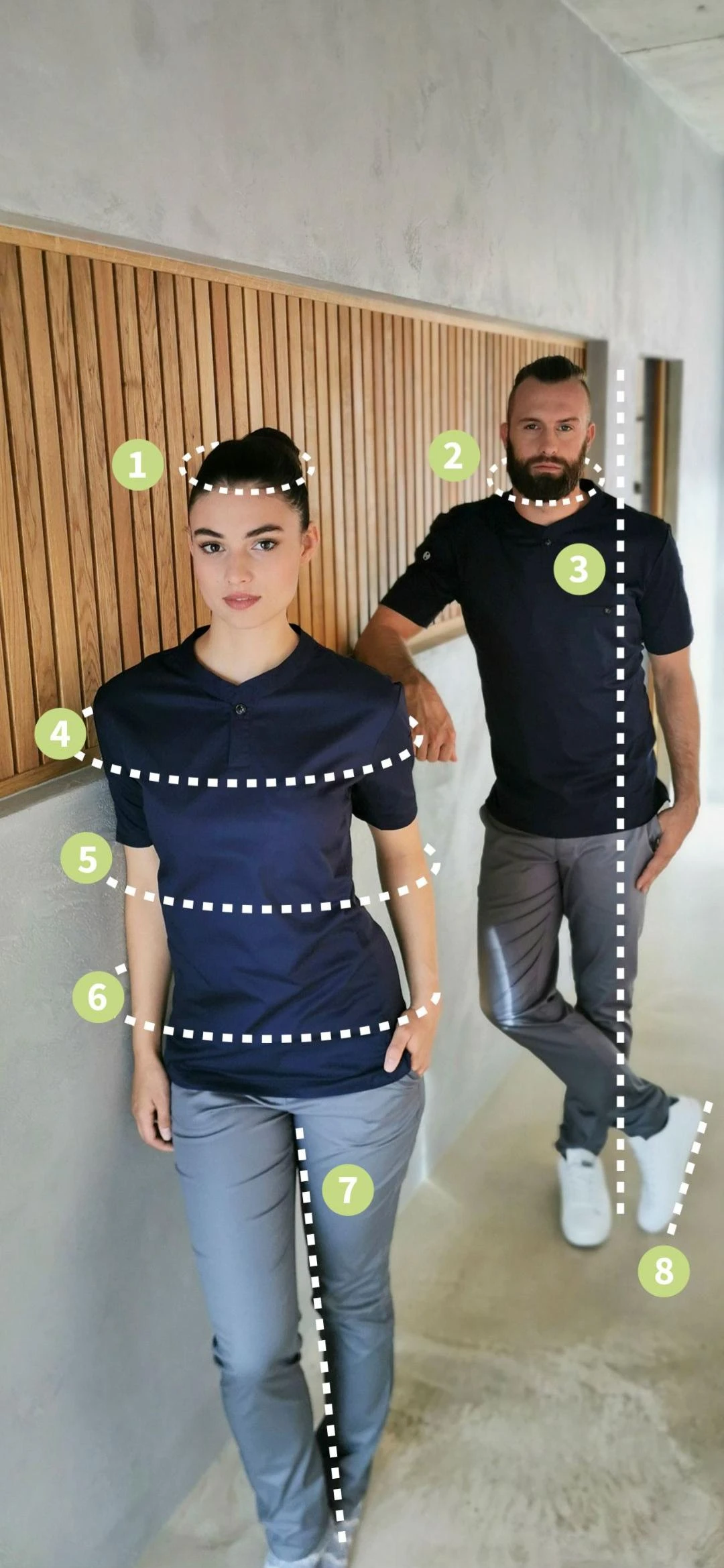 Bekleidet sollte man nur mit Unterwäsche oder sehr eng anliegender Kleidung sein. Schuhe sind nicht zu tragen. Da es sich um reine Körpermaße handelt, muss direkt am Körper gemessen werden. Die notwendigen Zugaben für Bequemlichkeit oder Funktionalität werden von uns automatisch bei der Entwicklung der Modelle berücksichtigt.