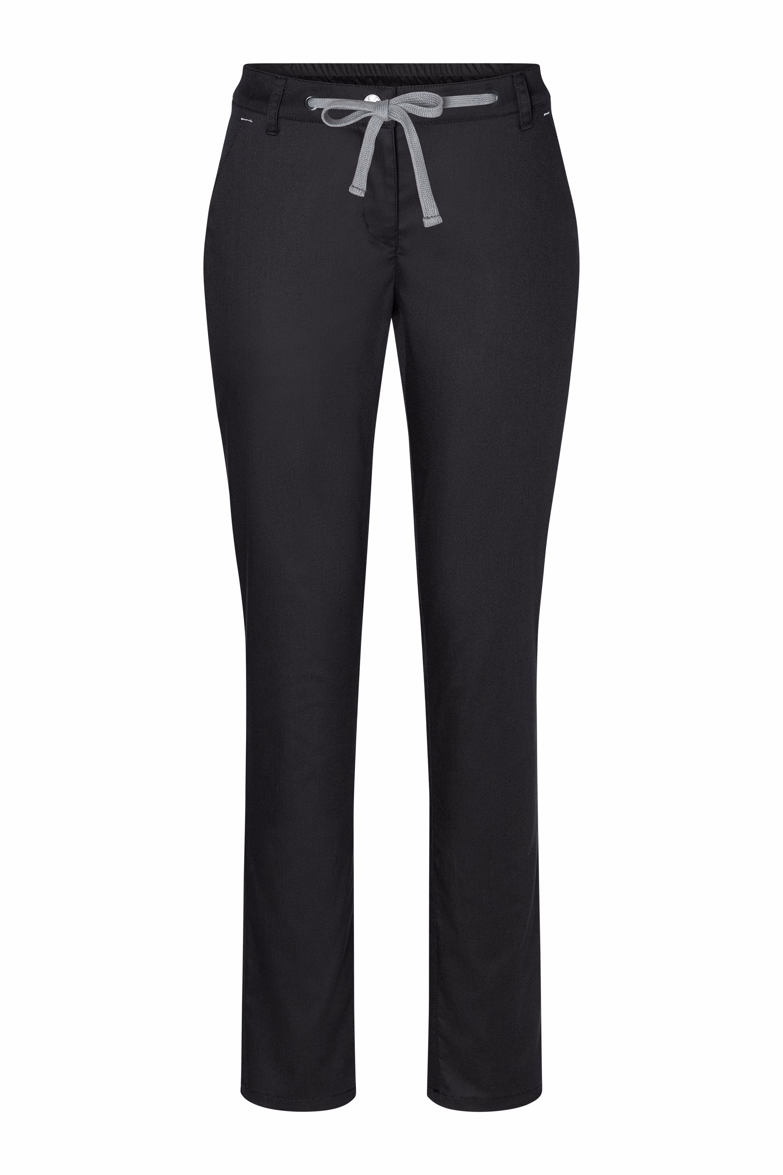 The fabric, made from 59% cotton, 39% polyester, and 2% elastane, combines natural breathability with durability and elasticity. The lightweight twill fabric ensures a close-fitting, modern tailored fit that flatters your silhouette. At the same time, the stretchy material allows unrestricted freedom of movement – ideal for a dynamic working day in the kitchen, service or wellness area. A flexible elastic band with a drawstring in the waistband adapts individually to your hip width, ensuring a comfortable fit without constriction.Well-thought-out details for greater functionality in everyday work