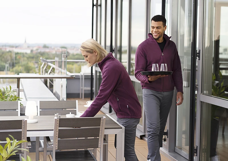 | warming, sustainable ladies' fleece jacket made of easy-care material, with stand-up collar