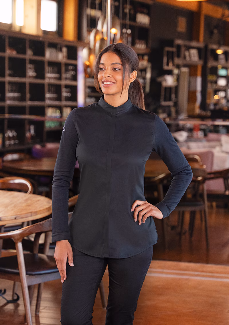 With the DIAMOND CUT Avantgarde long-sleeved women's chef jacket, Karlowsky presents a masterpiece of modern workwear that meets the highest standards in the catering, hotel, hairdressing, and wellness industries. This chef jacket combines timeless design with innovative materials and offers you unparalleled comfort for long working days.