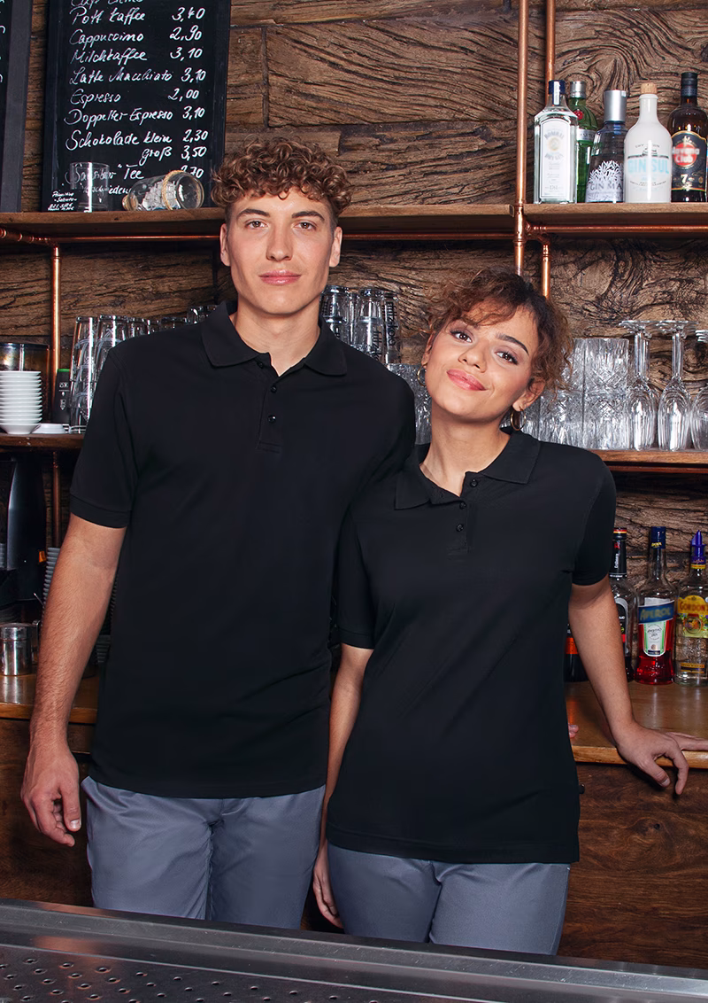 The Men's Workwear Polo Shirt Basic from Karlowsky combines timeless elegance with functional everyday practicality. Specially designed for the requirements of the catering, hotel, service, hairdressing, and wellness industries, this polo shirt offers a professional look and excellent comfort – from the kitchen to the reception desk.
