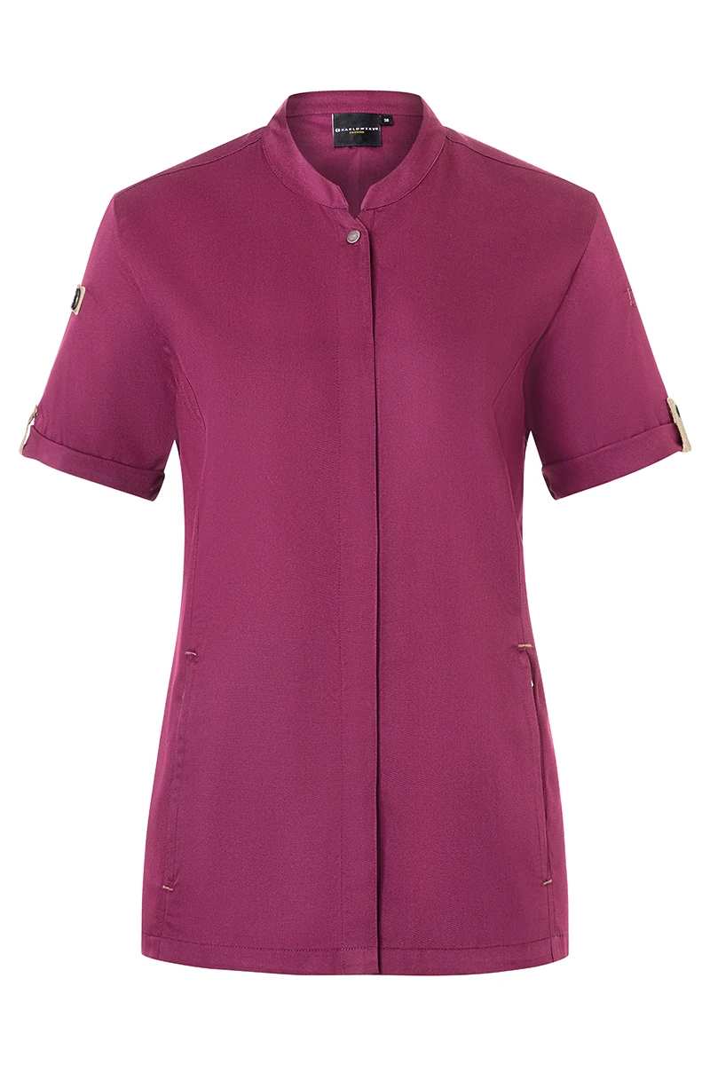 | innovative sustainable chef jacket for ladies with short sleeves that combines urban style with natural flair