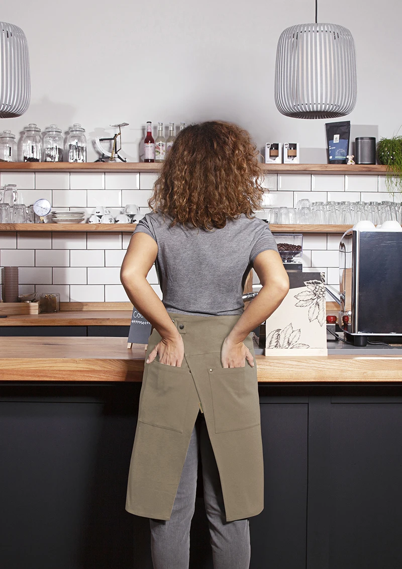 | modern, comfortable waist apron at the cutting edge perfectly combining sustainability and style