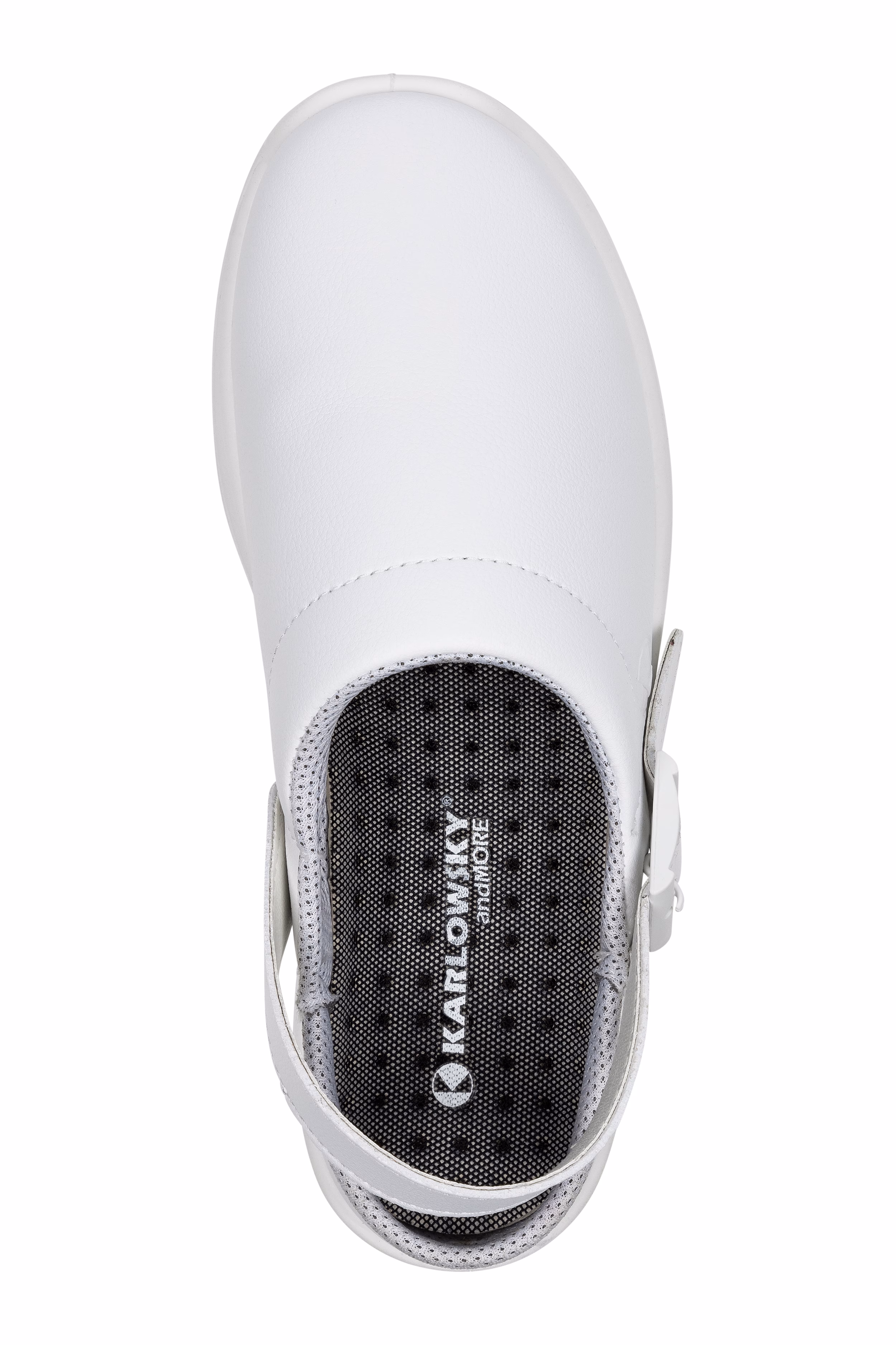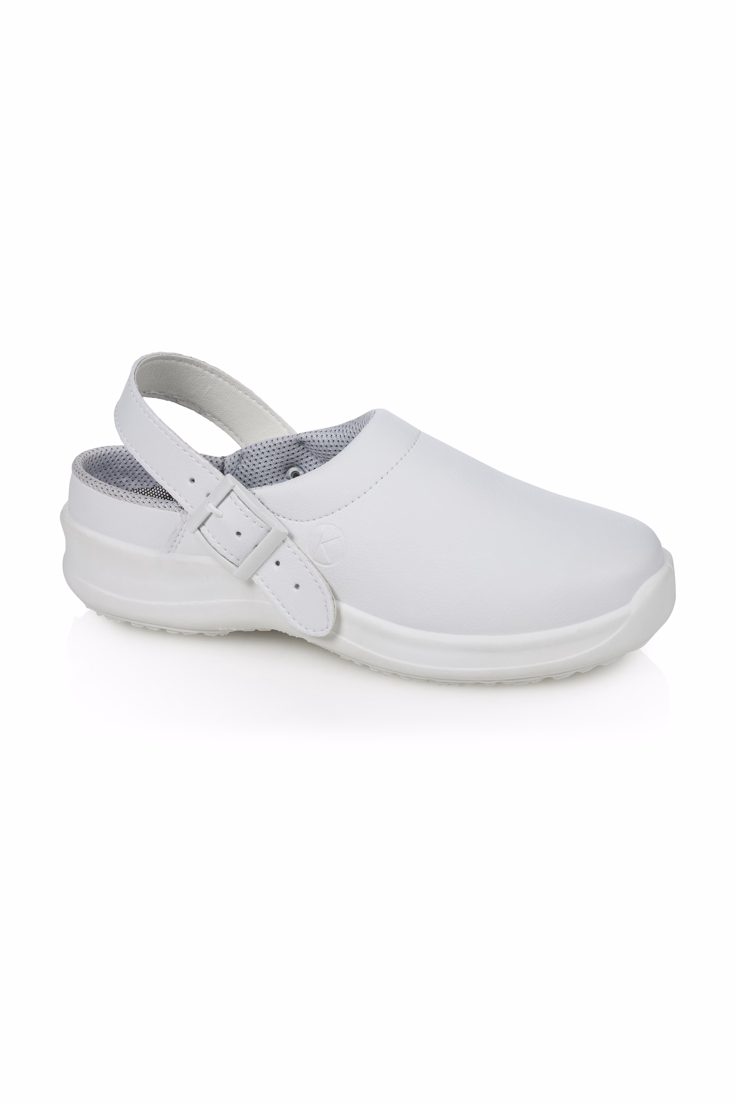 The open-back shoe has an adjustable heel strap with a buckle that adapts to the shape of your foot and guarantees a secure fit. This design not only allows you to put on and take off the shoe quickly, but also provides a flexible fit for changing requirements during the working day. The ergonomic shape with high energy absorption in the heel area protects your joints and noticeably increases wearing comfort.